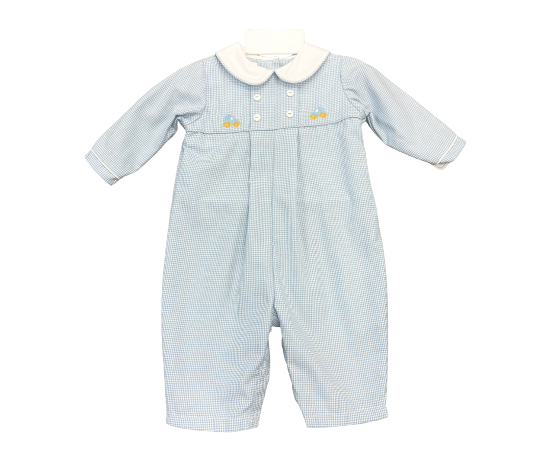 Petit Ami- Blue Mini Gingham Longall w Car Designs