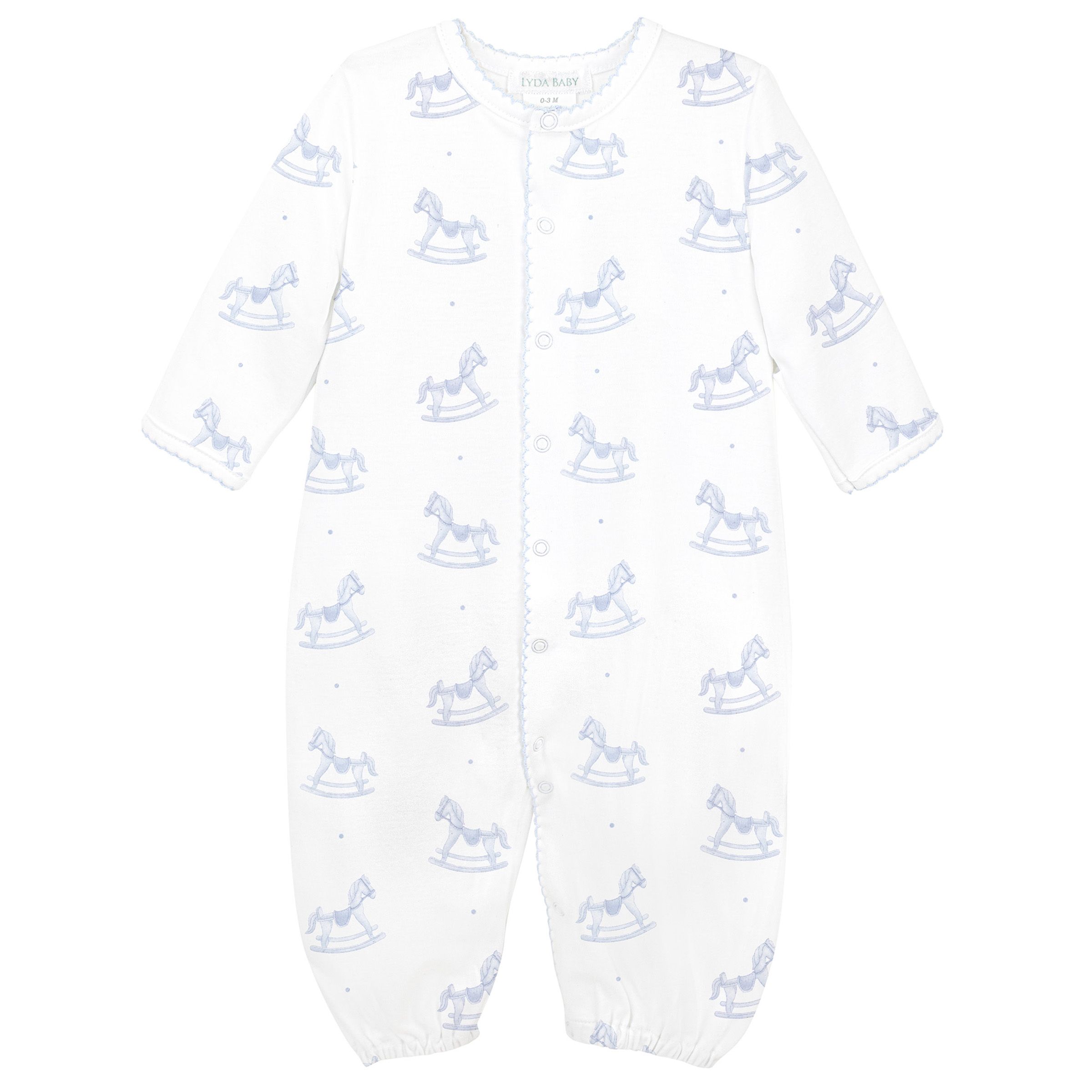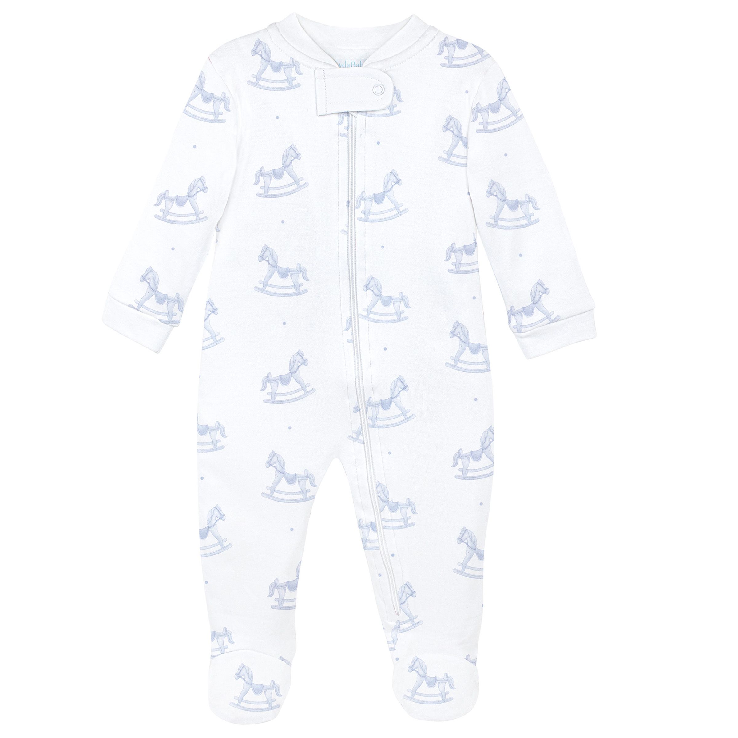LydaBaby- Blue Wooden Rocking Horse Zipper Footie