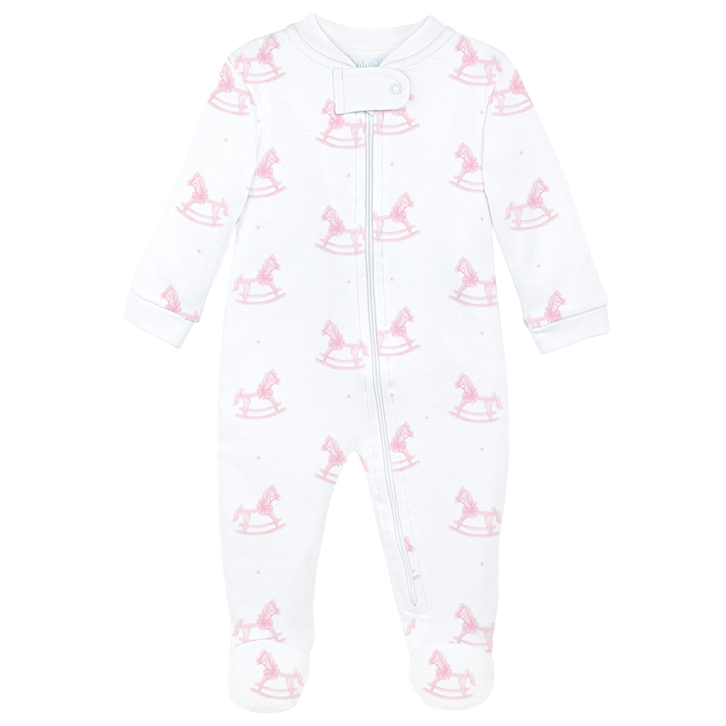 LydaBaby- Pink Wooden Rocking Horse Zipper Footie