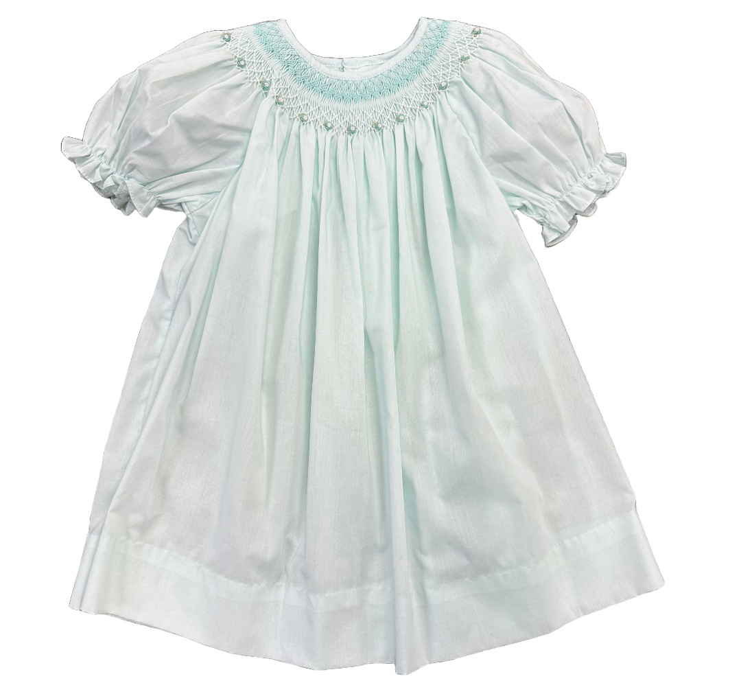Petit Ami- Mint & White Rose Smocked Dress quantity
